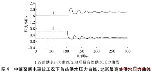 CJJ 34—2002《城市熱力網(wǎng)設(shè)計規(guī)范》第7.2.9、7.2.10條規(guī)定:“動態(tài)水力分析應(yīng)對循環(huán)泵或中繼泵跳閘、輸送干線主閥門非正常關(guān)閉、熱源換熱器停止加熱等非正常操作發(fā)生時的壓力瞬變進(jìn)行分析。動態(tài)水力分析后,應(yīng)根據(jù)分析結(jié)果采取下列相應(yīng)的主要安全保護(hù)措施:設(shè)置氮氣定壓罐;設(shè)置靜壓分區(qū)閥;設(shè)置緊急泄水閥;延長主閥關(guān)閉時間;循環(huán)泵、中繼泵與輸送干線的分段閥連鎖控制;提高管道和設(shè)備的承壓等級;適當(dāng)提高定壓或靜壓水平;增加事故補水能力。”