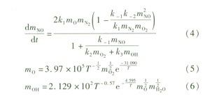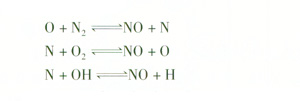在燃燒過程中有3種氮氧化物生成:瞬時N0x、燃料N0x和熱力N0x。對于天然氣這種清潔燃料的燃燒,熱力N0x生成是主要的。熱力N0x生成有3個主要反應(yīng):