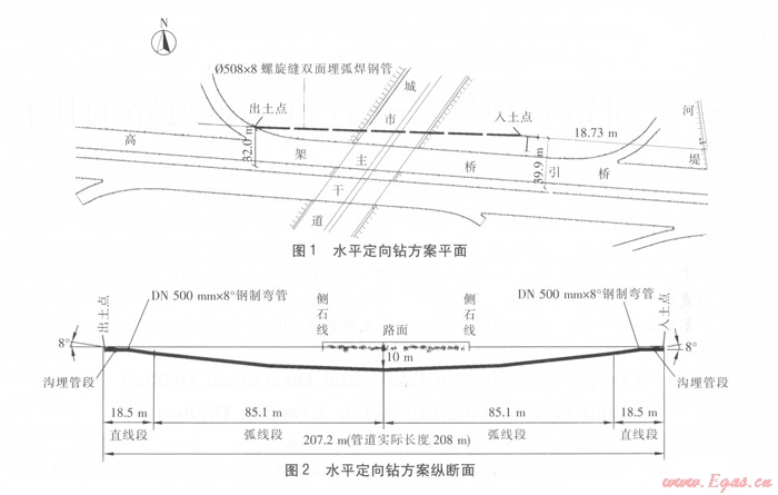 對(duì)于本工程,由于該段是貫穿整個(gè)城市主干線,且工期較為緊張,因此,本工程最終采取水平定向鉆方案。