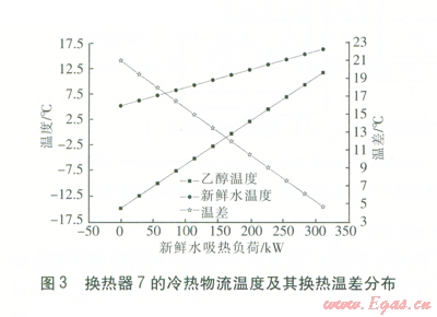 換熱器3、換熱器7的冷熱物流溫度及其換熱溫差分布分別見(jiàn)圖2、3。