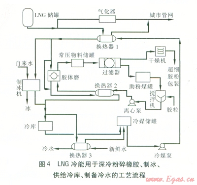 針對(duì)上述特點(diǎn),遠(yuǎn)期擬開(kāi)展LNG衛(wèi)星站冷能用于深冷粉碎橡膠、制冰、中小型低溫冷庫(kù)、發(fā)電的研究以及LNG的梯級(jí)利用等。