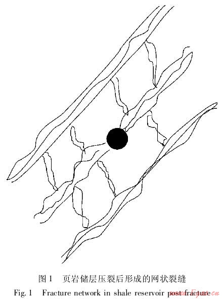 隨著油氣需求的激增,中國加大了頁巖油氣藏的勘探開發(fā)[1-2]。頁巖既是烴源巖,又是儲集層和蓋層,一般表現(xiàn)為致密物性特征,水平井套管完井與分段體積壓裂是目前頁巖儲層開發(fā)的主體技術模式[1-5]。頁巖儲層通過體積壓裂后,多級裂縫交織在一起形成縫網系統(tǒng),增大儲層基質與裂縫壁面的接觸面積,提高儲層整體滲透率,實現(xiàn)了儲層長寬高三維方向的全面改造。目前已形成針對頁巖儲層體積壓裂現(xiàn)場應用的關鍵技術,即:分段多簇射孔、快速可鉆式橋塞、滑溜水多級大型壓裂[5]。Cipolla等[6]研究表明:頁巖儲層壓裂后形成的縫網體積、滲透率是提高壓裂效果的關鍵,分段多簇射孔參數(shù)、多級壓裂加砂規(guī)模與這兩個參數(shù)密切相關,因此,它們是體積壓裂優(yōu)化設計的關鍵參數(shù)。目前,體積壓裂優(yōu)化設計主要借用產能預測模型、優(yōu)化縫網幾何參數(shù)和導流能力。模型主要包括離散裂縫模型(DFN)和雙重介質模型。DFN模型將縫網系統(tǒng)簡化為多裂縫或交錯分布的形態(tài),包括三維的線網模型、二維的離散模型以及隨機分布的多裂縫模型;雙重介質模型強調裂縫性油藏的雙孔隙本質,簡化裂縫的連通性與非均質性有關的問題[7-8]。兩種模型主要的問題在于:一是天然裂縫分布依賴于離散地質建模結果;二是輸入?yún)?shù)的精度要求較高;三是沒有建立縫網參數(shù)與加砂規(guī)模的關系模型,不便于現(xiàn)場應用。因此,需要針對頁巖儲層壓裂形成的縫網特征,建立一種新的體積壓裂設計方法以實現(xiàn)分段壓裂的射孔簇數(shù)、各段加砂規(guī)模的優(yōu)化。