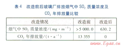 改造前后玻璃廠排放煙氣中SO2質(zhì)量濃度及CO2年排放量比較見表4。由表4可知,改造后玻璃廠排放煙氣中的SO2質(zhì)量濃度明顯降低,溫室氣體CO2排放量為零。改造后,過剩豬糞及秸稈得到了合理利用,豬糞污水化學(xué)需氧量(COD)將明顯降低,秸稈的田間焚燒將明顯減少。因此,改造后的生物質(zhì)多聯(lián)供系統(tǒng)帶來巨大的環(huán)保效益。