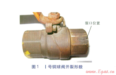 近年來,在西安秦華天然氣有限公司天然氣輸配系統(tǒng)中螺紋銅球閥與燃?xì)夤艿缆菁y連接處開裂事件屢有發(fā)生,據(jù)統(tǒng)計2011年中壓閥門井內(nèi)的放散銅球閥(DN 25 mm)及調(diào)壓箱進(jìn)口管道處設(shè)置的放散銅球閥(DN