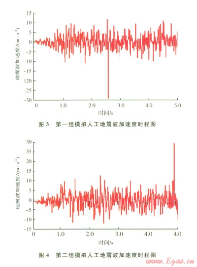 日前反應(yīng)譜理論在結(jié)構(gòu)工程抗震設(shè)計(jì)中己被廣泛應(yīng)用,國(guó)內(nèi)工程爆破界早已將反應(yīng)譜理論引入到爆破地震動(dòng)的研究中來(lái),并根據(jù)不同類(lèi)型的許多爆破地震實(shí)測(cè)數(shù)據(jù),通過(guò)計(jì)算作出了抗震設(shè)計(jì)反應(yīng)譜,把期望反應(yīng)譜作為目標(biāo)譜基于SIMQKE-GR程序設(shè)定不同的場(chǎng)地參數(shù),從而獲得地震加速度波形。假定地震基本烈度為8度,場(chǎng)地土為Ⅲ類(lèi)條件下,通過(guò)設(shè)定目標(biāo)反應(yīng)譜構(gòu)成人工模擬地震波?;厩闆r如下:地面運(yùn)動(dòng)最大加速度最大值為