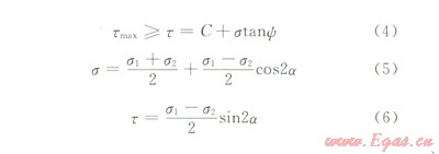 筆者采用巖石力學(xué)中應(yīng)用最為廣泛的Mohr-Cou-lomb強(qiáng)度判定準(zhǔn)則,應(yīng)用直線型強(qiáng)度曲線對井眼附近塊體進(jìn)行強(qiáng)度判斷。直線性表達(dá)式為: