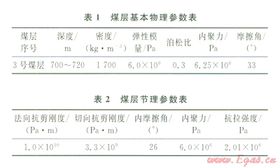 筆者選擇的研究對象為3號煤層,煤層的各種力學(xué)參數(shù)設(shè)置參照眾多研究成果,見表l2。