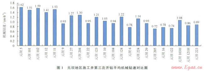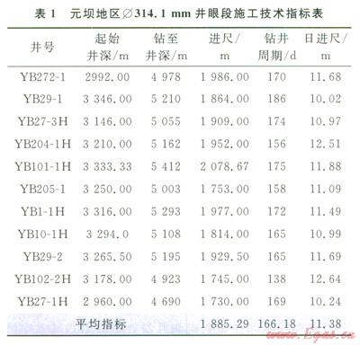 截至20134月,除YB27-2井外,中國(guó)石化西南油氣分公司在元壩地區(qū)部署的產(chǎn)能建設(shè)井均完成第三次開鉆。從表1中可以看出,采用推薦的技術(shù)集成應(yīng)用后,無(wú)論是鉆井周期還是日進(jìn)尺均優(yōu)于前期施工井。ll口井第三次開鉆平均鉆井時(shí)間166.18d,較前期平均值縮短34d。