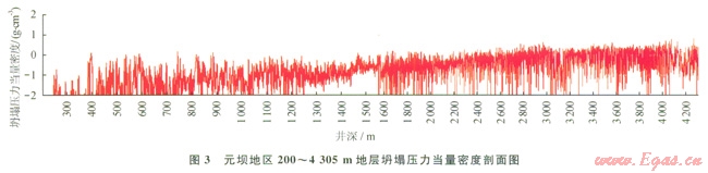根據(jù)井壁穩(wěn)定性分析結(jié)果,深度小于2800m的地層當(dāng)量應(yīng)力低于地層巖石的綜合強(qiáng)度,氣體鉆井井壁穩(wěn)定性較好如圖2,而深度超過(guò)2800m的地層坍塌密度高于空氣鉆井臨界坍塌壓力當(dāng)量密度值(3),這些層段‘營(yíng)氣鉆井過(guò)程中存在垮塌掉塊,可通過(guò)優(yōu)化鉆井參數(shù)來(lái)克服,并做好氣液轉(zhuǎn)換準(zhǔn)備;千佛崖組—須家河組地層氣體鉆井穩(wěn)定性較差,YB3井在自流井組3727.83791.5m應(yīng)用氮?dú)忏@井,僅進(jìn)尺63.7m,不但后期通井循環(huán)時(shí)間較長(zhǎng),鉆井費(fèi)用也有所增加,在目前技術(shù)條件下該井段采用氣體鉆井還存在一定難度。