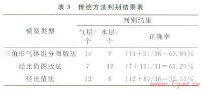 圖1表明筆者提出的儲層流體識別方法均好于3種傳統(tǒng)的方法。傳統(tǒng)方法中以三角形氣體組分圖版法為最好,烴比值圖版法次之,烴比值法再次,與實際應(yīng)用情況相符合。但3種方法的判別止確率均小于75%,從數(shù)理統(tǒng)計角度看判別能力不強,這也是此類方法在識別復(fù)雜儲層流體性質(zhì)時效果不好的原因之一。