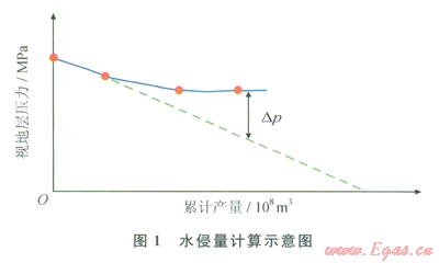 水侵量可根據(jù)視地層壓力與累計(jì)產(chǎn)氣量的關(guān)系曲線進(jìn)行計(jì)算(圖1)。