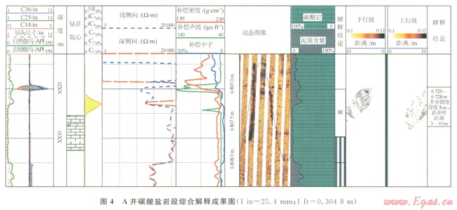 遠(yuǎn)探測聲波反射波成像測井在徑向探測深度上是一次飛躍,其他測井儀器探測深度都不足3m,而該儀器徑向探測深度達(dá)到了l0m,能識(shí)別此范圍內(nèi)的裂縫孔洞型儲(chǔ)集層。該技術(shù)先后在塔里木、大港等油田共計(jì)61口上應(yīng)用,井旁縫洞型儲(chǔ)層有效性評(píng)價(jià)符合率達(dá)到85.4%,其中在塔里木油田共計(jì)測井41口,符合率達(dá)到了88.2%,應(yīng)用效果良好。該技術(shù)為試油決策提供了科學(xué)依據(jù),為油田的增儲(chǔ)上產(chǎn)提供了技術(shù)支撐。