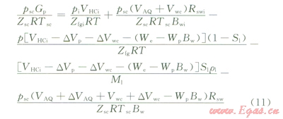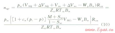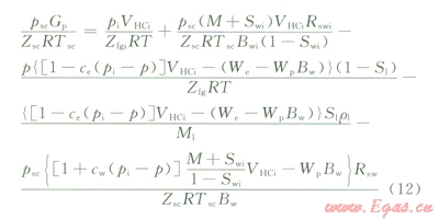 將式(2)~(10)代人式(1),即得到考慮水溶氣的凝析氣藏物質(zhì)平衡方程: