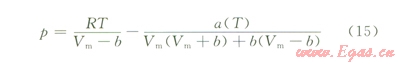 天然氣在地層水中的溶解度受到溫度、壓力、地層水礦化度以及天然氣組成等因素的影響[7-9]。由于天然氣在水中的溶解屬氣液平衡問題,溶解度除通過實驗測定外,也可根據(jù)相平衡原理進行計算。對于地層條件下的高壓相平衡問題,可采用狀態(tài)方程法。廣泛使用的PR狀態(tài)方程[10]形式為:
