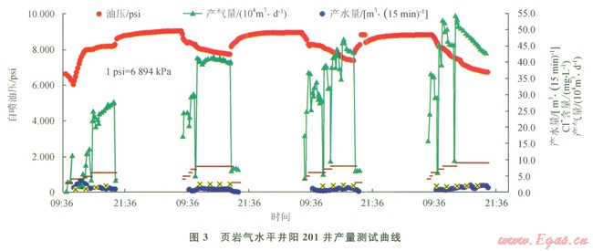 中國石油天然氣股份有限公司(以下簡稱中國石油)已在四川的長寧、威遠、富順、永川,云南昭通等開展頁巖氣勘探開發(fā)。其中我國第一口頁巖氣水平井——威201-H1井于位于四川盆地南部,20112月完鉆,井深2835.6m,水平段長1079m;分11段壓裂,加石英砂584.6m3,入地總液量23654m3,井下微地震監(jiān)測顯示,初步達到了規(guī)模體積壓裂的效果,目前日產(chǎn)氣量l3×104m3。中石油與殼牌合作區(qū)塊的水平井陽201井,測試平均日產(chǎn)氣量為45.0×104m3,井口套壓48.3MPa,表現(xiàn)出良好的高產(chǎn)潛力(3)。