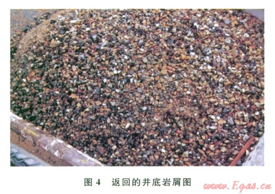 本次Æ215.9mm垂直井眼段的鉆進(jìn)試驗(yàn),按鉆井泵排量為18.5Ls時(shí)計(jì)算環(huán)空返速就達(dá)到36.57mmin,實(shí)際鉆井中鉆井泵排量在1720Ls,井眼清洗情況良好(4)。