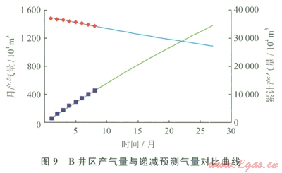 B井區(qū)投產(chǎn)氣井7口,20097月至20114月開展定壓試驗(yàn),累計(jì)產(chǎn)氣20.778 1×108m3,地質(zhì)儲量采出程度34.06%。試驗(yàn)期間平均生產(chǎn)油壓為6.0MPa,產(chǎn)氣量52.0201×104m3d;試驗(yàn)?zāi)┢诰诋a(chǎn)氣量為36.8238×104m3d(7、89)。
