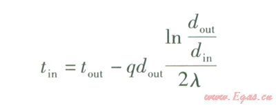 銅管內(nèi)壁溫度tin的計(jì)算式為: