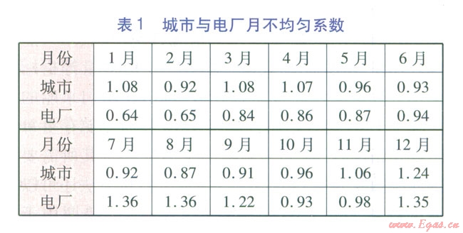 該地區(qū)天然氣主要用戶包括燃?xì)怆姀S和城市用戶,其中:城市用戶包括居民用戶、商業(yè)用戶、一般工業(yè)用戶及交通用戶,其天然氣需求為36×108m3/a;電廠用戶包括天然氣調(diào)峰發(fā)電廠及天然氣熱電廠,其天然氣需求為78×108m3/a。城市用戶和電廠用戶天然氣總需求為114×108m3/a,其月不均勻系數(shù)見表1.