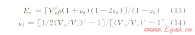 式中Ed為巖石動態(tài)彈性模量,MPa;vd為巖石動態(tài)泊松比;Vp為縱波速度,m/s;Vs為橫波速度,m/s;ρ為巖石密度,g/cm3。