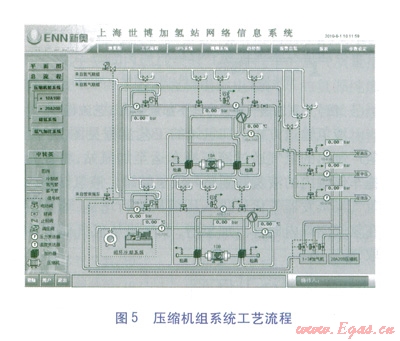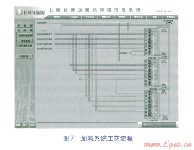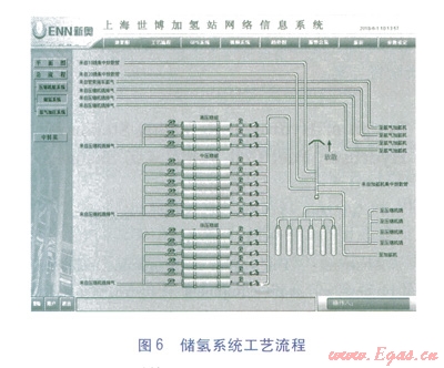 上海世博會專用燃料電池加氫站根據(jù)上述因素,加氫系統(tǒng)工藝流程見圖7。加氫機(jī)先從管束(0級瓶組)取氣,當(dāng)管束內(nèi)的氫氣壓力與汽車上的車載儲氣瓶壓力平衡時,停止從管束取氣;切換至低壓瓶組,開始從低壓儲氣瓶組取氣,低壓瓶組內(nèi)壓力與車載儲氣瓶內(nèi)壓力平衡時,停止取氣;切換至中壓瓶組,開始從中壓儲氣瓶組取氣,中壓瓶組內(nèi)壓力與車載氣瓶內(nèi)壓力平衡時,停止取氣;切換至高壓瓶組,開始從高壓儲氣瓶組取氣,高壓瓶組內(nèi)壓力與車載氣瓶內(nèi)壓力平衡時,停止取氣;如果還有車輛需要加氣,開啟壓縮機(jī),壓縮機(jī)從管束內(nèi)取氣,進(jìn)行增壓后,直接給加氫機(jī)供氣,直至汽車加滿氫氣,經(jīng)壓縮機(jī)增壓的氫氣按高、中、低壓瓶組順序向各儲氣瓶組充氣。