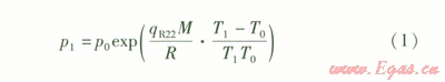 熱泵循環(huán)過程工質(zhì)壓力與熱泵蒸發(fā)溫度和冷凝溫度有關(guān)。選R22為熱泵的工質(zhì),假定工質(zhì)為等溫狀態(tài)下進(jìn)行冷凝與蒸發(fā),壓縮機(jī)進(jìn)口工質(zhì)壓力為: