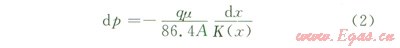 式中p為地層壓力,MPa;μ為流體黏度,mPa·s;A為滲流截面積,m2;Ks (x)為污染區(qū)的滲透率,D。