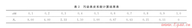 1 不同污染模式下的污染表皮系數(shù)