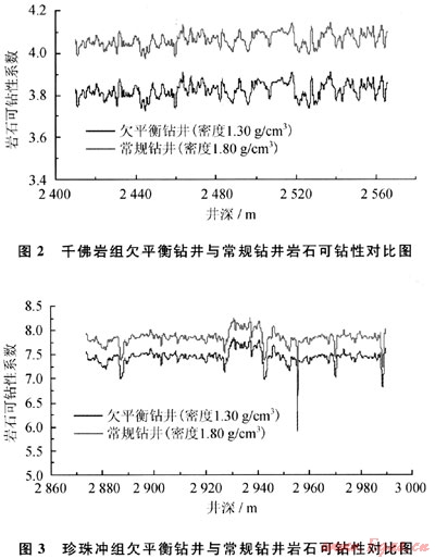 2 欠平衡與常規(guī)鉆井的巖石可鉆性對(duì)比