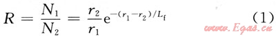 式中N1、N2分別為近探測(cè)器和遠(yuǎn)探測(cè)器的熱中子或俘獲伽馬計(jì)數(shù)率;r1、r2分別為短源距和長(zhǎng)源距;Lf為地層的快中子減速長(zhǎng)度。