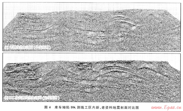 摘要:塔里木盆地庫車坳陷的地震資料受到復(fù)雜地表結(jié)構(gòu)和地腹地質(zhì)條件的影響,普遍存在著信噪比低、剖面品質(zhì)不高的問題,制約了油氣勘探開發(fā)的進(jìn)程。為此,在庫車坳陷DK二維地震攻關(guān)測(cè)線施工中,以寬線觀測(cè)系統(tǒng)、大基距組合接收(巨厚黃土堆積帶采用9串檢波器面積組合接收,老巖層出露的復(fù)雜山體區(qū)采用3串檢波器“三”字形組合接收)為核心采集技術(shù),開展詳細(xì)表層調(diào)查,利用地震工程遙感技術(shù)選擇合理的激發(fā)點(diǎn)和接收點(diǎn),同時(shí)增加目的層的覆蓋次數(shù),強(qiáng)化激發(fā)和接收條件,從而提高了單炮記錄的信噪比,改善了地震剖面的品質(zhì),為庫車坳陷構(gòu)造形態(tài)的重新認(rèn)識(shí)提供了良好的地震資料。攻關(guān)試驗(yàn)的成功表明,該套技術(shù)方法在其他類似地區(qū)也具有很好的推廣應(yīng)用價(jià)值。