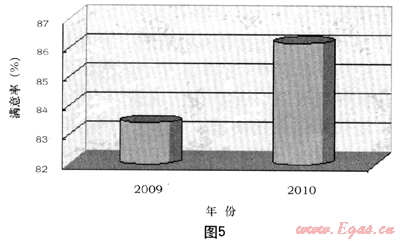 圖5為我公司2009/2010年第三方測評抄表業(yè)務(wù)滿意度變化圖。我們從圖5可以看出,自從推廣了一報一抄抄表模式后,大大減少了入戶次數(shù),抄表擾民系數(shù)降低,得到了廣大用戶的認可。由第三方開展的客戶滿意度調(diào)查結(jié)果顯示,2010年的抄表業(yè)務(wù)客戶滿意度從2009年的83.42%提升到86.16%,上升近3個百分點。