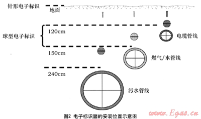 電子標(biāo)識(shí)系統(tǒng)在歐美發(fā)達(dá)國(guó)家已有40多年的使用歷史,白上個(gè)世紀(jì)末以來(lái),在我國(guó)燃?xì)庑袠I(yè)也開(kāi)始逐步得到應(yīng)用。它不僅可以指示出其埋設(shè)的位置,還可以將內(nèi)部?jī)?chǔ)存的信息,比如提示管道口徑、埋設(shè)時(shí)間、三通彎頭、閥門(mén)、周邊建筑物情況等特征點(diǎn)的精確信息發(fā)送給電子探測(cè)儀,有效彌補(bǔ)其它示蹤方式的不足。
