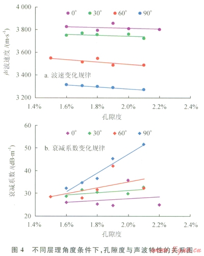 2.2.1不同層理角度條件下,孔隙度對(duì)聲波特性的影響