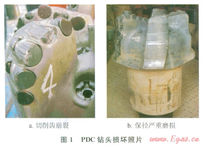 蘇里格氣田屬于非均質性極強的致密巖性氣田,儲層深度達3500m,鉆遇地層中的白堊系、侏羅系、三疊系、二疊系等地層硬度高、可鉆性差,其中紙坊組一石千峰組為含礫石夾層砂巖,鉆時極慢,直井段平均機械鉆速5.37mh,斜井段復合鉆進平均機械鉆速1.01mh,滑動鉆進平均機械鉆速0.35mh。鉆進時蹩跳嚴重,往往造成PDC鉆頭切削齒崩裂、肩部齒脫落、保徑嚴重磨損等早期損壞(1)