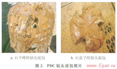 斜井段鉆遇二疊系中的石千峰組、石盒子組多為黏性很強的泥巖,極易黏附在PDC鉆頭上,堵塞噴嘴,形成泥包(2),造成機械鉆速大幅度降低、泵壓升高、甚至鉆頭長時間無進尺。