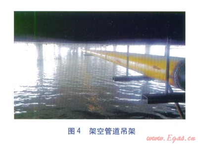 鋼管架空敷設(shè)優(yōu)勢是緊貼橋身下面,不容易受到海水沖刷和腐蝕,但鋼管吊裝、固定施工難度大。