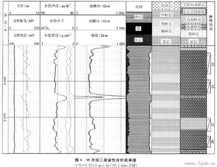 根據(jù)以上測井響應(yīng)特征并結(jié)合巖心分析資料,可正確識別儲層巖性(圖1)。