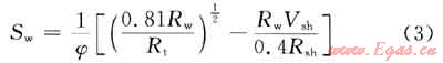 另外,也可用校正后的阿爾奇公式求含水飽和度,效果也較好,其公式為: