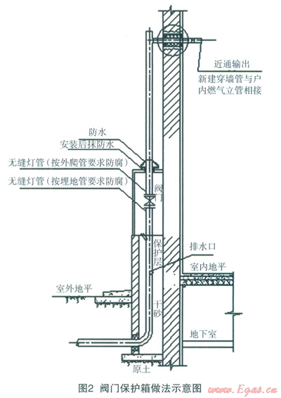 ①地上引入時設(shè)置室外閥門保護(hù)箱