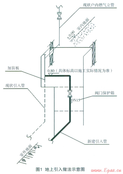 燃?xì)庖肟跒橥ピ喝細(xì)夤艿琅c戶內(nèi)燃?xì)夤艿赖姆纸琰c(diǎn),分為地上引入口和地下引入口兩種,是管件的主要集中部位,也是安全事故多發(fā)部位。用戶引入口更貼近居民的日常生活區(qū)域,一旦發(fā)生泄漏事故將直接危及居民的人身、財產(chǎn)安全。岡此,能否對燃?xì)庖肟谶M(jìn)行安全、合理的改造,是實現(xiàn)安全用氣,造福于民的關(guān)鍵措施之一。