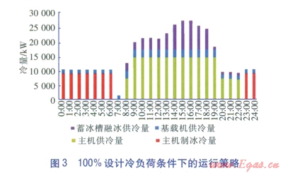50%、70%、l00%設(shè)計(jì)冷負(fù)荷時(shí)的運(yùn)行策略分別見圖1~3。
