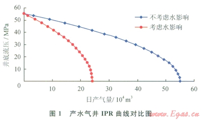 由圖l可以看出,不考慮水影響時(shí)計(jì)算的無(wú)阻流量要遠(yuǎn)遠(yuǎn)大于考慮水影響時(shí)計(jì)算所得的無(wú)阻流量。根據(jù)單相氣流的滲流理論與氣水兩相的滲流理論分析可知,此計(jì)算結(jié)果是可信的。這也表明氣井的產(chǎn)水將大大地降低氣井的產(chǎn)能。