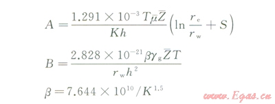氣井單相滲流的穩(wěn)定二項(xiàng)式產(chǎn)能方程為: