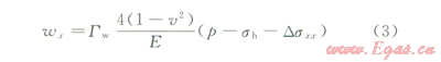 式中wx,為主裂縫縫寬,mm;Gw為功能函數(shù);E為彈性模量,MPa;u為泊松比,無因次;sh。為最小水平主應(yīng)力,MPa;Dsxx,為縫間干擾應(yīng)力,MPa;z代表x、y、z;wz為垂直于z軸的次生縫縫寬,mm;lz為垂直于z軸的次生縫縫寬與主裂縫縫寬之比,無因次。