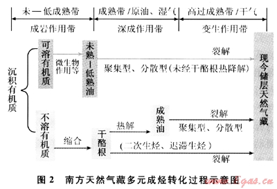 近年來的研究揭示南方、塔里木盆地的多元生烴轉(zhuǎn)化過程,認(rèn)識到干酪根晚期成烴理論模式忽略了可溶有機質(zhì)對油氣田形成的貢獻(xiàn),已證實再生烴源是中國高演化海相層系油氣富集成藏的重要來源之一,無論分散型還是聚集型都可成為油氣成藏的主要來源,如普光氣田有原油裂解氣的重要貢獻(xiàn)是基本共識。
