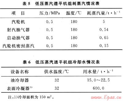 經(jīng)咨詢國內(nèi)某低壓蒸汽透平制造廠商,采用凝汽式透平驅(qū)動(dòng)1臺(tái)循環(huán)水泵的消耗如表5、6所示。