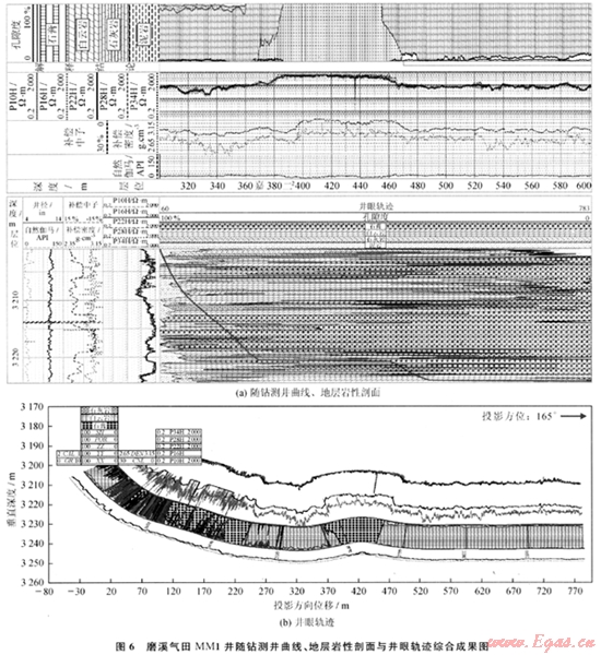 摘要:隨鉆地質(zhì)導向技術實現(xiàn)了以井下實際地質(zhì)特征來確定和控制井眼軌跡,達到了提高有效儲層鉆遇率的目的,對于高效開發(fā)復雜氣藏具有重要意義。為此,簡述了地震、測井聯(lián)合反演和三維可視化建模在地質(zhì)導向儲層預測中的作用,然后結(jié)合四川盆地中部磨溪氣田MM1水平井等多口井的產(chǎn)層導向鉆進情況,總結(jié)出采用隨鉆測井(LWD)資料確定中靶點和鉆頭在目的層的位置,以及井眼軌跡、地層巖性剖面和隨鉆測井曲線綜合成圖與調(diào)整井眼軌跡等方法,并以此來指導磨溪氣田三疊系嘉陵江組白云巖儲層的地質(zhì)導向鉆井施工,明顯提高了水平井目的層的鉆遇率和地質(zhì)導向鉆井的成功率,效果良好,值得推廣應用。