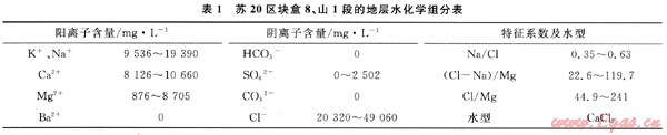 1) 蘇20區(qū)塊地層水型為CaCl2型,礦化度大,具有沉積水經(jīng)漫長(zhǎng)的水巖作用,深循環(huán)、徑流停滯或交替緩慢、深度濃縮、正變質(zhì)特征。
