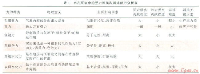 1 水在頁巖中受力分析和返排特征